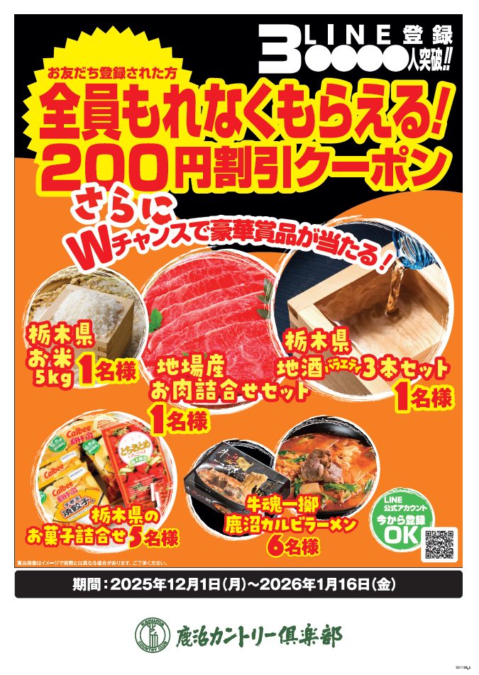 *キーワード入力でクーポンとWチャンス応募フォームが届きます。キーワードはスタッフへお尋ねください。