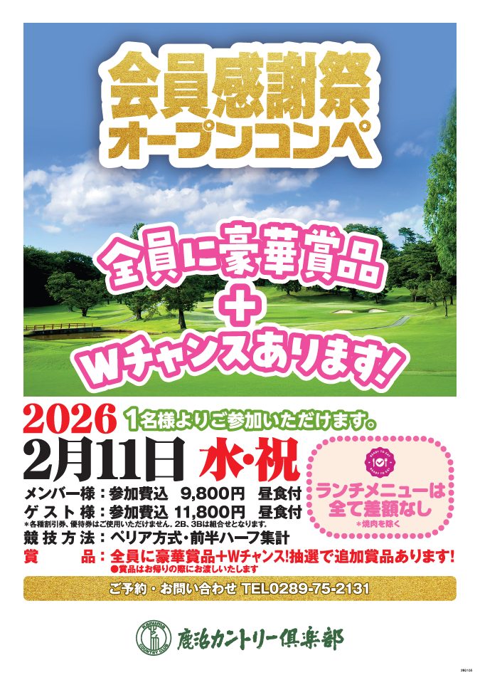 会員の皆様に感謝の気持ちを込めて、オープンコンペを開催いたします。