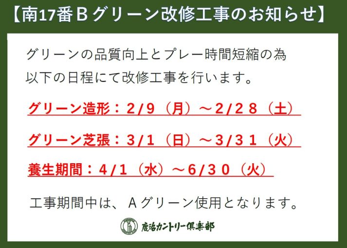 南17番Bグリーン改修工事のお知らせ